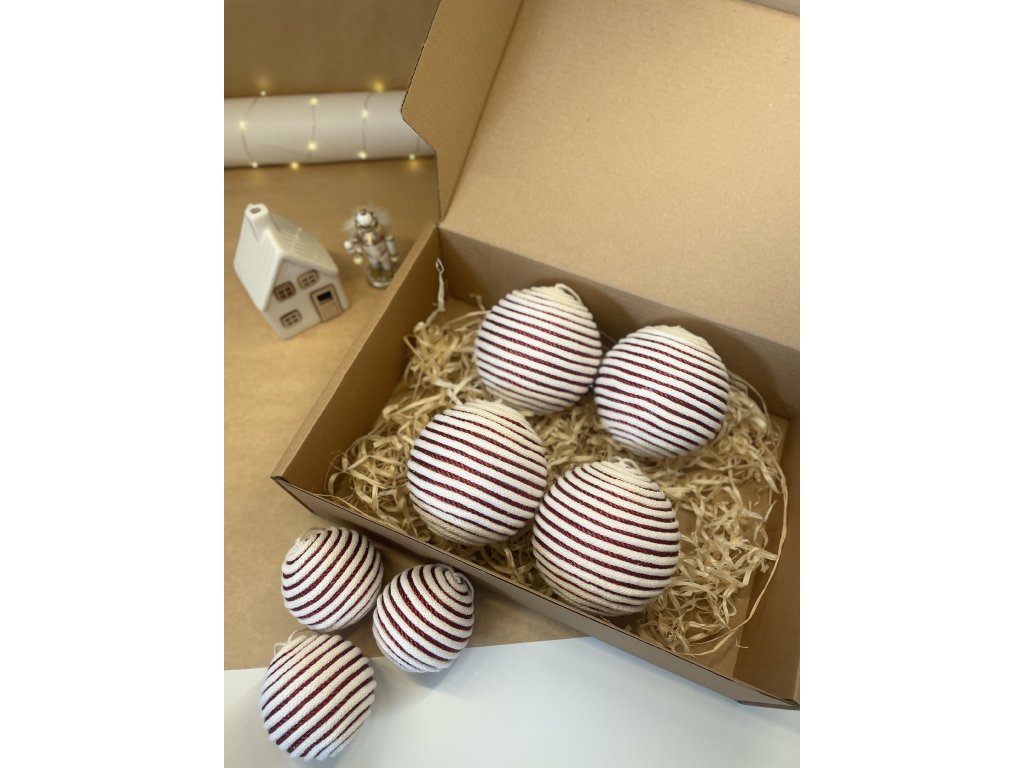 Každá guľa je ručne vyrobená z recyklovanej bavlny a polystyrénovej gule, ľahučká a odolná, vhodná pre rodiny s deťmi aj domácnosti so zvieratkami.