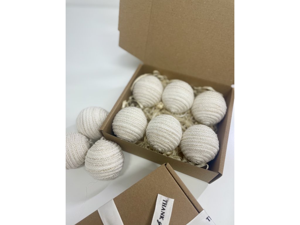 Každá guľa je ručne vyrobená z recyklovanej bavlny a polystyrénovej gule, ľahučká a odolná, vhodná pre rodiny s deťmi aj domácnosti so zvieratkami.