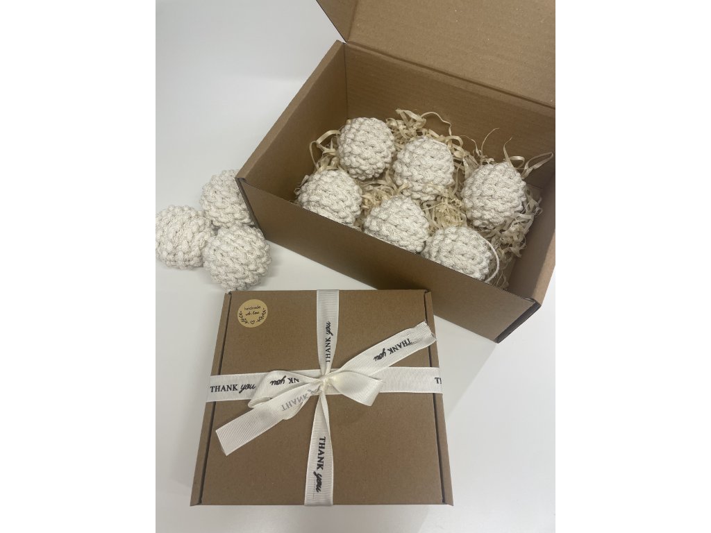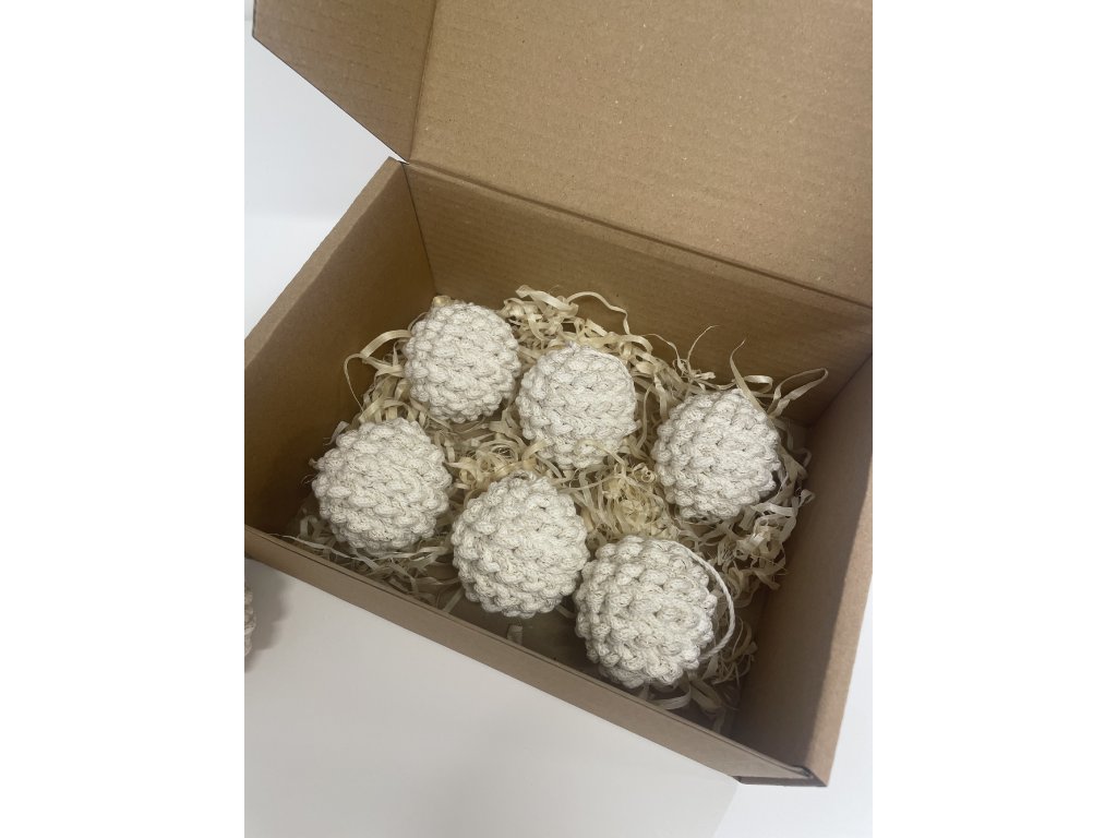 Každá guľa je ručne vyrobená z recyklovanej bavlny a polystyrénovej gule, ľahučká a odolná, vhodná pre rodiny s deťmi aj domácnosti so zvieratkami.