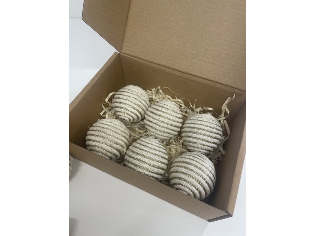 Každá guľa je ručne vyrobená z recyklovanej bavlny a polystyrénovej gule, ľahučká a odolná, vhodná pre rodiny s deťmi aj domácnosti so zvieratkami.
